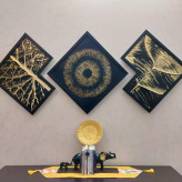 تابلو نقاشی 3تیکه برجسته ورق طلا مربع دکوراتیو مدرن