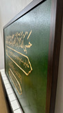 این تابلوابعاد۸۰*۵۰هست باورق طلا نوشته شده،قسمتهای حاشیه باخمیر برجسته کاری شده است،میتوانید رنگ ،متن نوشته و ابعاد رو تغییر بدهید برای مشاوره و ثبت تغییرات با شماره تماس موجود درسایت تماس بگیرید با شماره تلفن خود را در سایت ثبت کنید