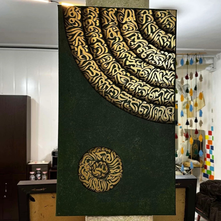 تابلو نقاشی خطاطی شده ،رنگ زمینه سبز خوشرنگ کالیگرافی متن وان یکاد بصورت کامل نوشته شده،شما میتونین هر متن دیگه ای هم سفارش بدین ابعد 40*70هست ،ضدآب هست،جنس تابلو از بوم درجه1هست ،هزینه قاب جداگانه گرفته میشود