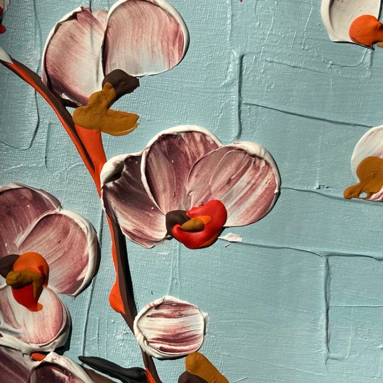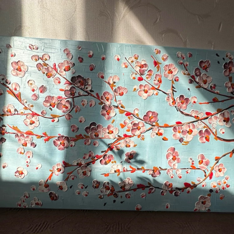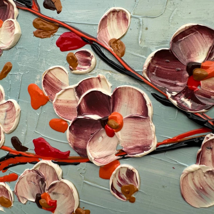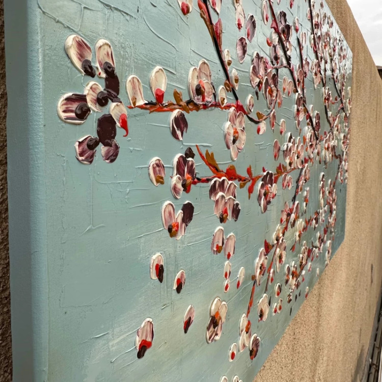 تابلو نقاشی برجسته گل درخت شکوفه بهار بوم قاب عکس دکوری اکرلیک