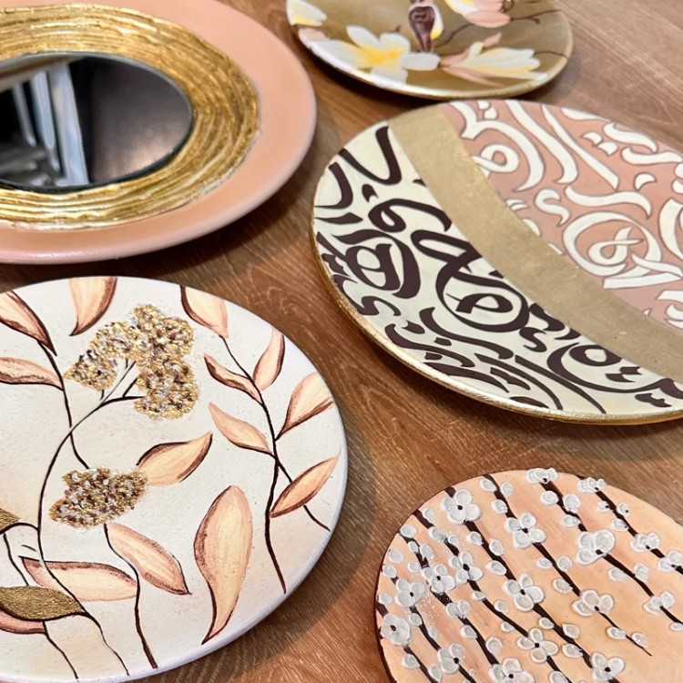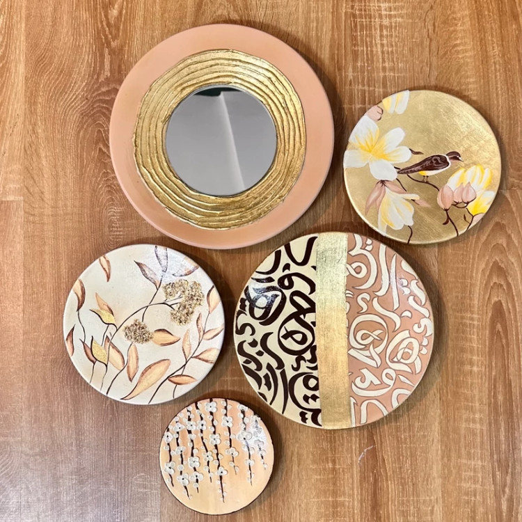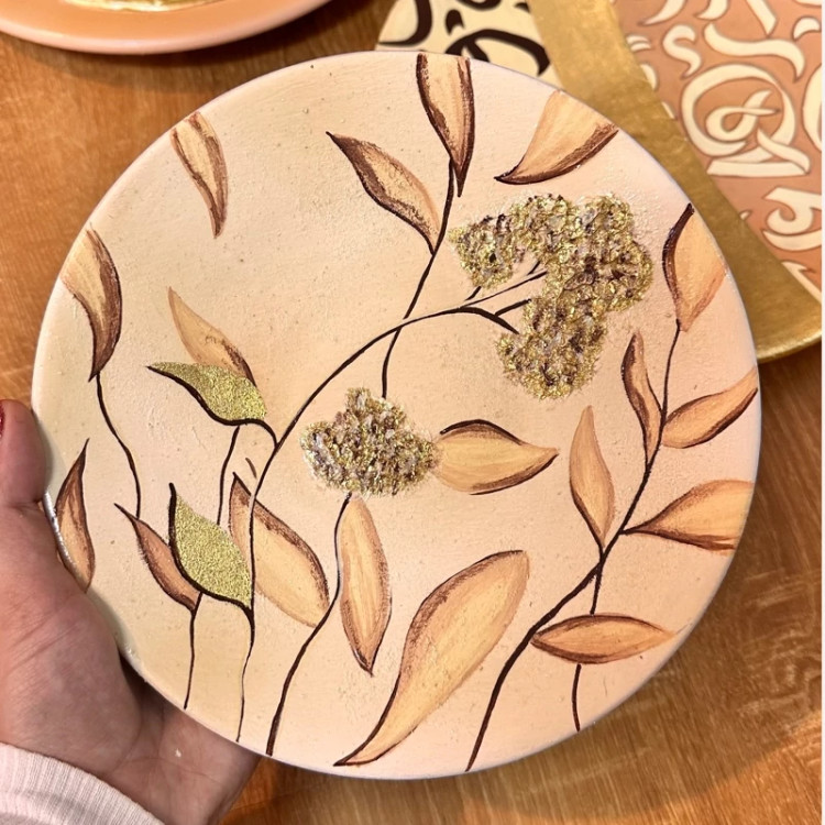 دیوارکوب بشقاب سفال تزیینی قاب تابلو برجسته ورق طلا آینه دکور (پس کرایه)